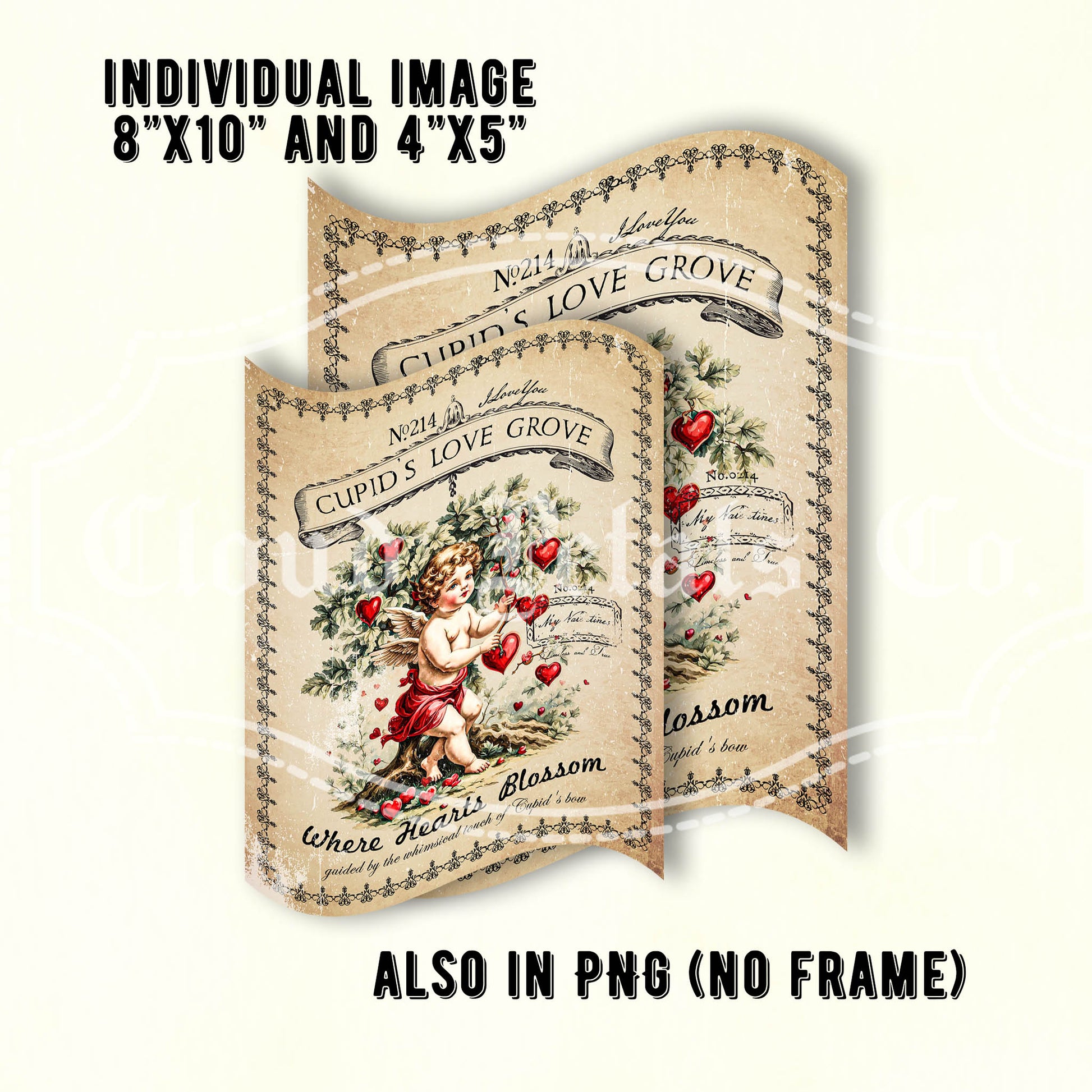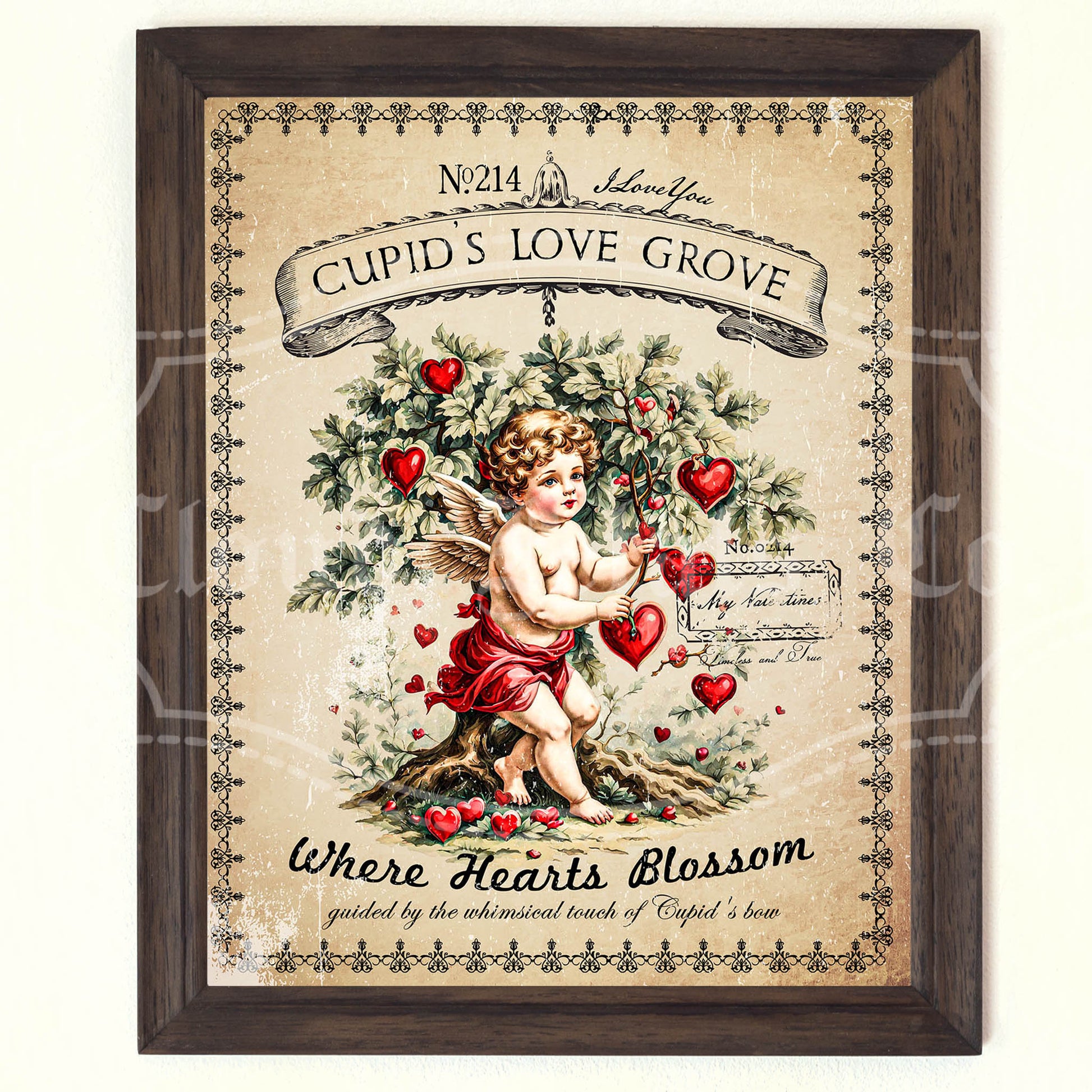 Celebrate the magic of love with this Cupid Love Grove Wall Art, a romantic printable featuring a cherub resting beneath a tree adorned with heart-shaped leaves. With the phrase “Where Love Blooms”, this vintage-inspired artwork brings warmth, charm, and timeless affection to your Valentine’s Day decor.