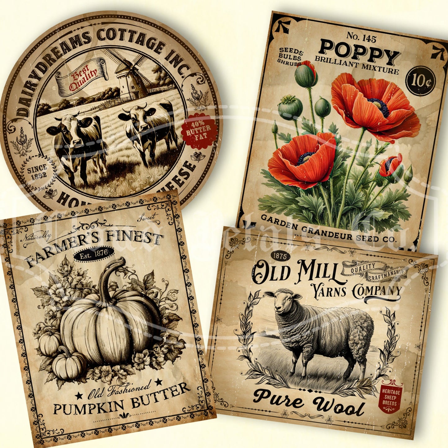 Vintage Kitchen Labels – Printable Tags for Wool, Pumpkin Butter, Cheese & Poppy