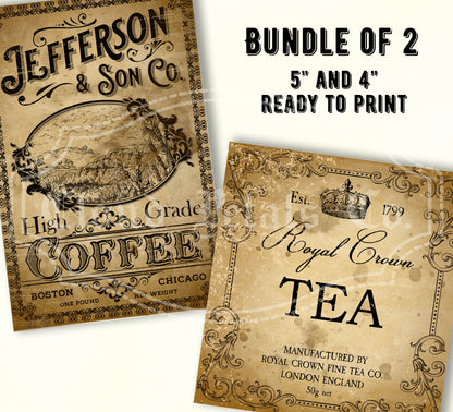 Bring vintage charm to your kitchen with this printable set of Vintage Style Kitchen Labels. Designed for coffee and tea, these rustic jar tags feature aged textures and antique-inspired typography, perfect for farmhouse kitchens, DIY pantry organization, or primitive-style crafts. Print them at home and use them on glass jars, containers, or gift packaging for a warm, handmade look. Great for labeling kitchen essentials while adding timeless style to your space.